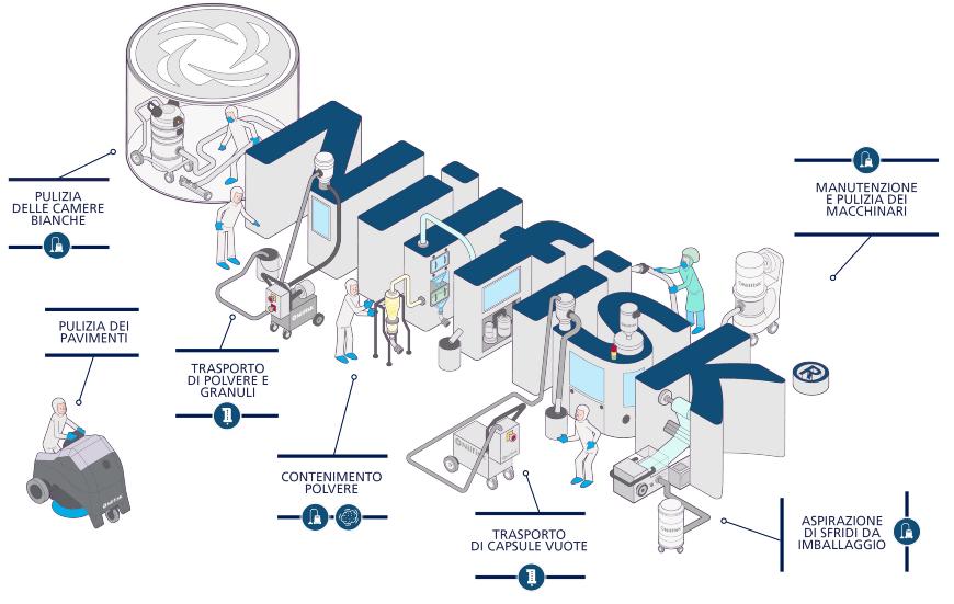 Negli anni la ditta si è specializzata nella fornitura una linea completa di prodotti ad hoc per vari settori, eccone alcuni: farmaceutico, chimico, alimentare, elettronico, laser e dell'imballaggio.